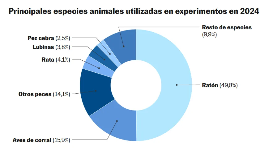 Según el Ministerio de Agricultura, Pesca y Alimentación (MAPA), los mamíferos siguen representando el grupo que es más utilizado en la investigación, seguido de los peces y luego los conejos.