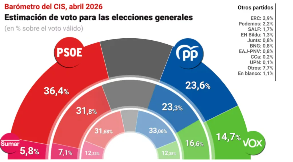 Al mismo tiempo, algunos medios cuestionan la neutralidad del CIS, señalando posibles sesgos a favor del gobierno, mientras que encuestas privadas presentan escenarios más equilibrados. También conviene destacar que estos datos reflejan intenciones de voto y no resultados electorales definitivos, por lo que la evolución del escenario político dependerá de acontecimientos futuros.