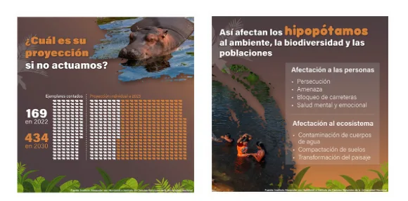 Las autoridades colombianas afirman que alrededor de 80 hipopótamos podrían ser sacrificados para frenar el impacto ecológico de la especie, que altera los ríos, afecta a especies nativas y representa un peligro para las comunidades locales. Según el Ministerio de Ambiente, la población actual ronda entre 169 y 200 individuos y, sin el debido control, podría superar los 500 en 2030 y más de mil en 2035. Estos animales han sido declarados especie exótica invasora debido a su impacto negativo en los ecosistemas locales. Su presencia en las riberas del río Magdalena ha provocado contaminación del agua, alteración de los hábitats naturales y una amenaza directa a especies nativas como el manatí y la tortuga de río. Además, los hipopótamos representan un riesgo para las comunidades humanas, especialmente pescadores y habitantes locales, debido a su comportamiento agresivo.